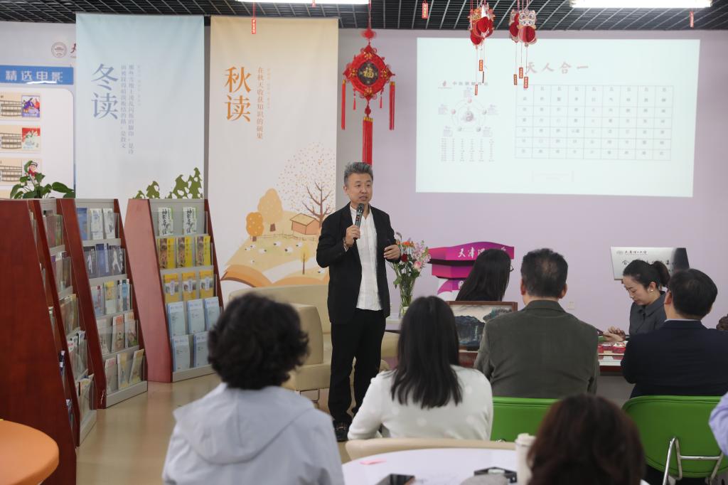 随后,陈胜勇为苏长来、徐彩桐、宗兆睿三位老师颁发“武医健身养生”“合真药香传承基地”导师聘书。陈胜勇、图书馆主要负责人和非遗手工制香技艺第五代传承人宗兆睿共同为“合真药香传承基地”揭牌。天津音乐广播陈凌灵老师带领在场师生共同诵读中国古典诗词,开启典耀中华声音之旅,以此致敬第30个世界读书日。