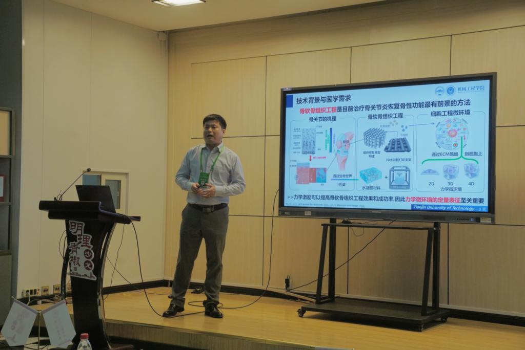 林祥龙作题为“3D打印水凝胶支架力学表征方法与组织再生调控”的报告。该研究构建了用于3D打印水凝胶支架变形测量的OCE系统,实现了通过对力学微环境的实验表征来指导骨软骨组织工程的力学仿生设计,进而调控骨软骨组织的原位再生。