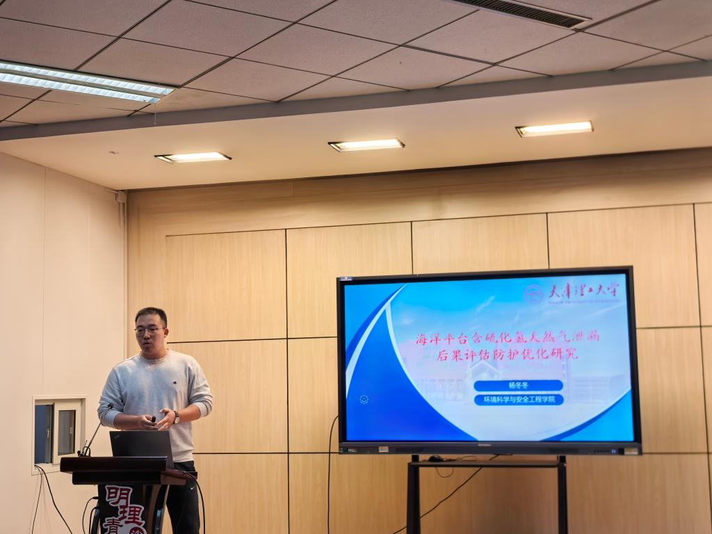 杨冬冬作题为“海洋平台含硫化氢天然气泄漏后果评估与防护优化研究”的报告。该项目针对不同动态因素影响下的事故后果评估方法进行深入探讨,分析过程保护系统、通风措施等安全防护手段对事故危害的缓解效果,致力于为海洋含硫油气资源的安全高效开发提供理论支持。