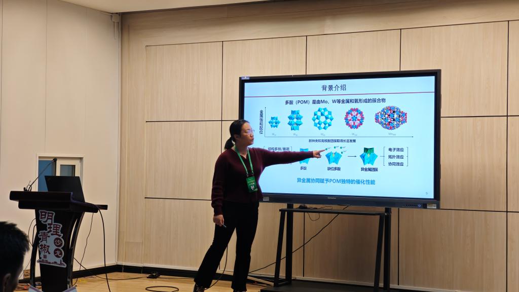 尹华卿作题为“仿酶团簇的甲烷光催化”的报告。该研究围绕甲烷单加氧酶仿生催化位点设计,借助原子精度团簇催化剂的精准设计与合成策略,成功制备系列光催化剂,实现甲烷在常温差压下的高附加值转化。