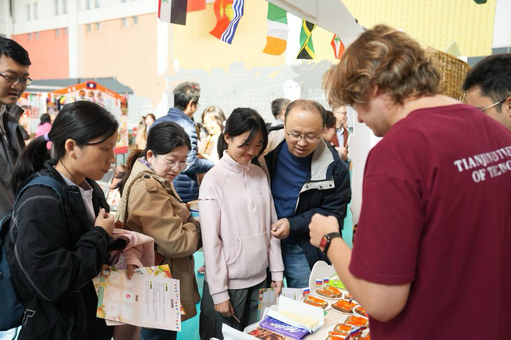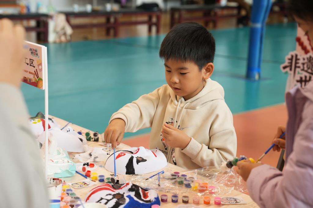在国际美食摊位与非遗文化体验区,来自俄罗斯、塔吉克斯坦、秘鲁、马来西亚等8个国家的留学生准备了各具特色的家乡美食,让师生和孩子们不出校门便能品尝“世界味道”。充满中国韵味的京剧脸谱绘画、典雅精致的漆扇制作、巧思妙构的竹编风铃等非遗体验项目,也吸引了大量小朋友动手参与。活动还设置了拍照打卡区,现场人员沉浸式感受中华优秀传统文化的独特魅力和异域风情。
