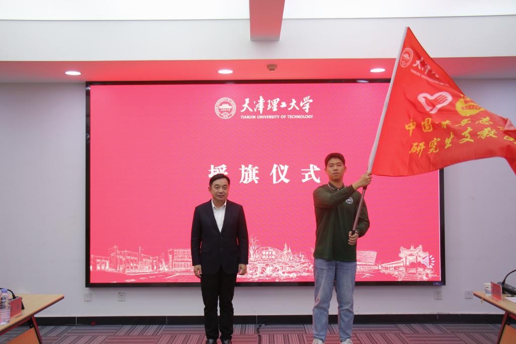 叶宁为第四届研究生支教团授旗,志愿者代表姜栩森接旗。随着红色队旗的传递,我校第四届研究生支教团正式肩负起中国青年志愿者第28届研究生支教团的使命与担当。他们将以青春之名接过服务西部的接力棒,到祖国和人民最需要的地方发光发热,为中国式现代化建设贡献青春力量。