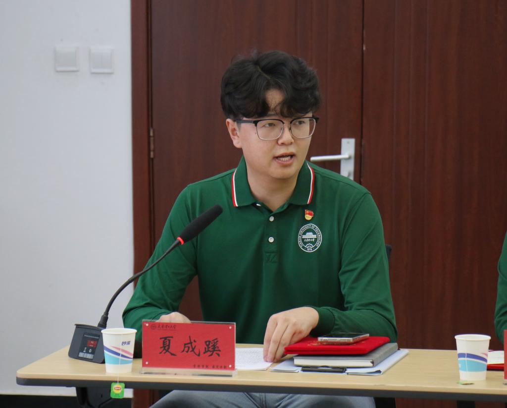 第二届研究生支教团代表夏成蹊从深耕教学主责主业、强化思想政治引领、浸润中华优秀传统文化、播撒科学创新火种、赋能学生健康成长、促进各民族交往交流交融六个方面进行工作汇报,并代表第二届研支团全体成员向第四届研支团送上美好祝愿。他希望新一届研支团成员在薪火相传中,书写天理研支团在西部广袤土地的青春答卷。