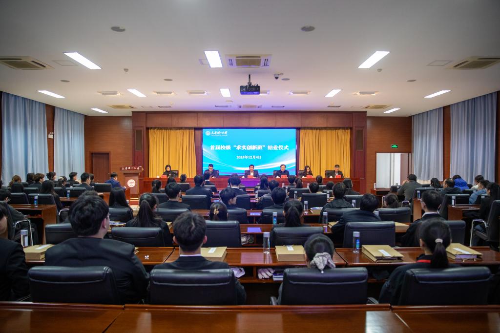 结业仪式上,参会领导为首届校级“求实创新班”学员颁发结业证书,并寄语同学们在新赛道上不断取得新突破。