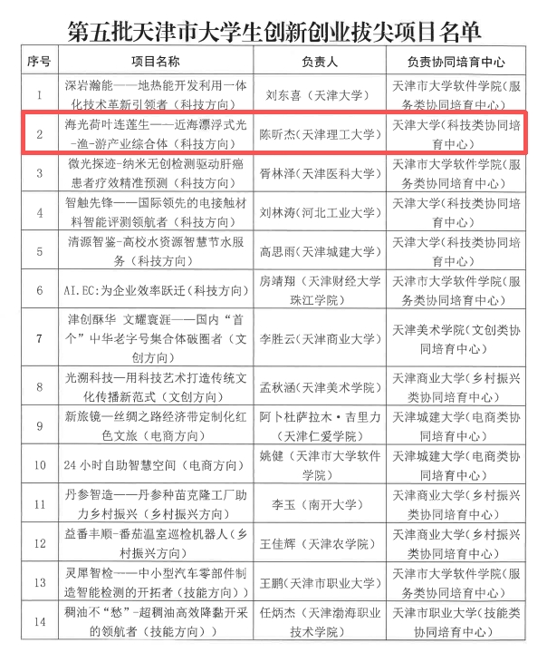 日前,天津市教育两委公布了2025年度天津市大学生创新创业拔尖项目立项名单。我校海洋能源学院项目《海光荷叶连莲生——近海漂浮式光—渔—游产业综合体》获批科技方向拔尖项目立项。