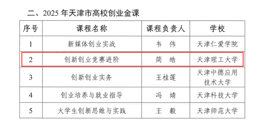 近日,市教育两委组织开展了2025年天津市高校就业创业金课评定工作,我校《创新创业竞赛进阶》课程成功入选。