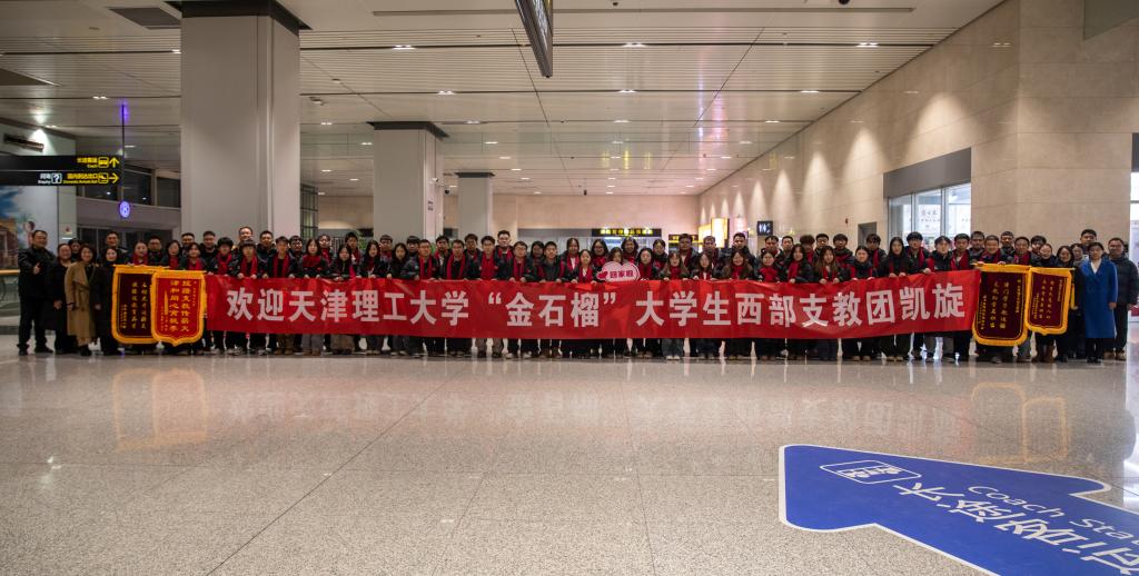 近日,我校2025年“金石榴”大学生西部支教团54名师生顺利完成各项支教任务,平安返津、载誉而归。党委学生工作部及各学院相关负责人前往天津滨海国际机场,迎接支教团师生一行,并举行了简短温馨的欢迎仪式。