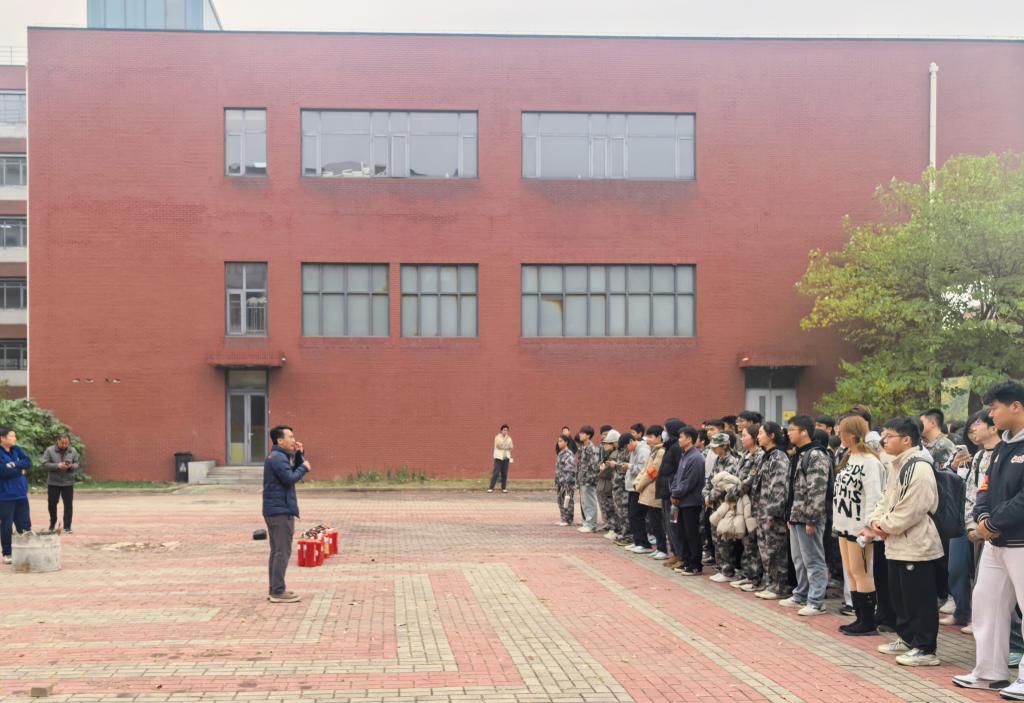 工程训练中心成立专项工作组,结合机械加工、焊接实训等车间的安全风险点,制定《消防应急演练实施方案》,明确职责分工。演练前,各车间指导教师通过实训课前宣讲,向学生讲解火灾逃生路线、灭火器使用原理、疏散要领等知识。演练过程中,实训教师引导学生按照制定路线迅速撤离,引导学生避开设备密集区域及狭窄通道。在演练中,所有人员安全撤离至楼前开阔地带,各班组迅速清点人数并向指挥组汇报,确认无人员遗漏。