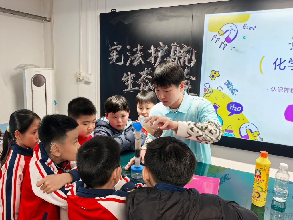 12月3日,化学化工学院走进天津科技大学附属柳林小学,开展生态环境科普活动。