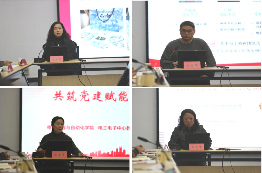会上,管理学院工商管理教工党支部、材料科学与工程学院新能源研究院党支部、电气工程与自动化学院电工电子中心教工党支部和艺术学院视传系教工党支部,分别就建设思路、工作举措、存在问题及下一步计划等内容进行了汇报和交流。首批“明理行”党建领航工程培育创建单位的党支部书记分别结合自身工作,围绕建设思路分享了心得体会。