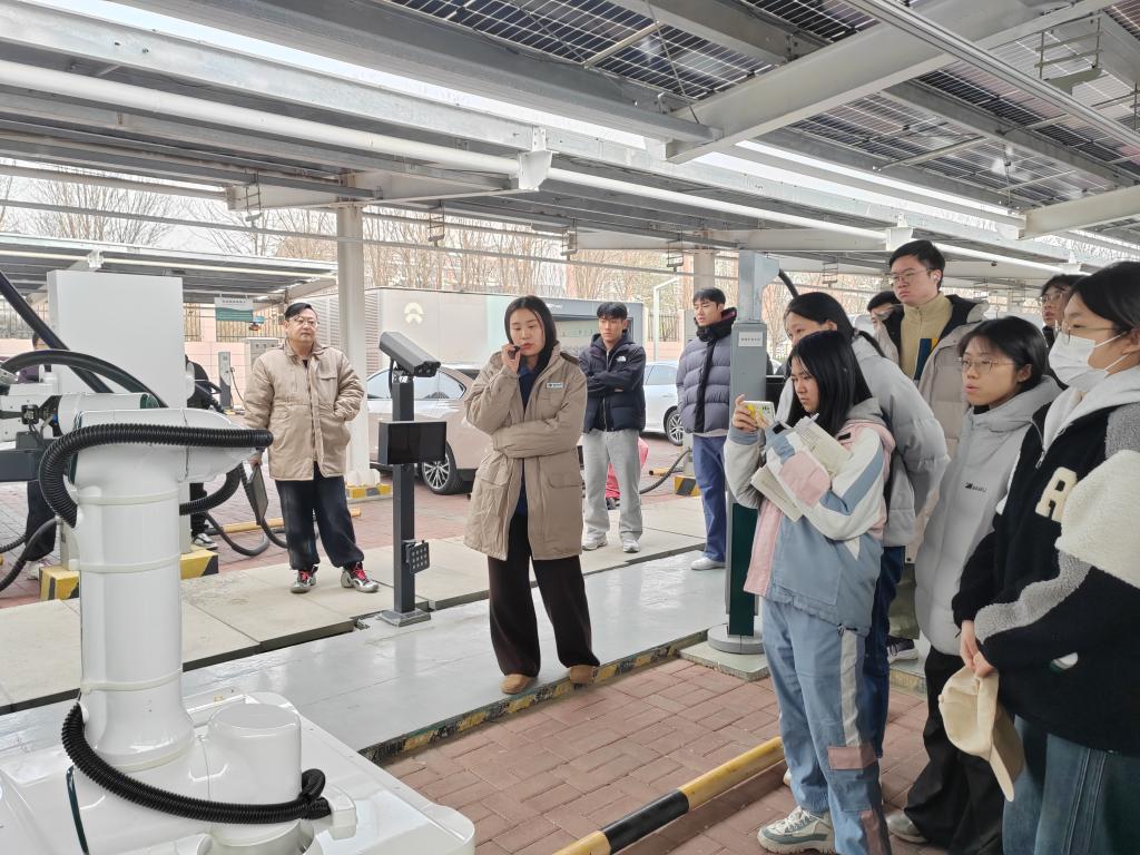活动前期组织参赛学生赴津门湖新能源车综合服务中心开展实地研学。学生通过观摩自动充电机器人、智能充电桩等前沿设备,深入了解“光储充换”和“冷热电”综合能源系统,为方案设计积累实践经验。