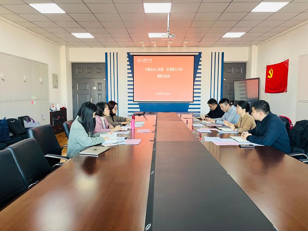学院主要负责人从学科建设、师资力量、人才培养、科研成果与社会服务等方面介绍了学院发展情况,重点说明了社会工作专业在服务基层治理、助力民生保障等领域的实践成果。郭建静介绍了部门职能定位、重点工作方向以及当前天津市社会工作发展面临的机遇与挑战,为双方后续合作明确了方向。双方围绕落实相关工作要求进行磋商,达成深度合作意向。未来将依托专业人才培养基地,联合开发融入天津本土实践案例的特色教材与实习实践模式、推进实习督导评估标准化体系建设、共建具有示范效应的“行业特色型”实习实践基地,推动优质资源共建共享。