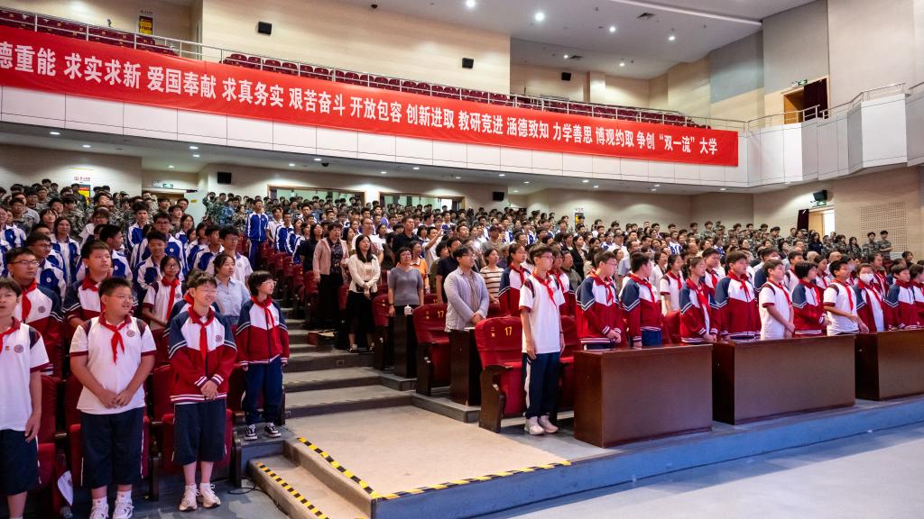 9月17日下午,市教育两委、市关工委、市教育系统关工委在我校举办“红色旋律 薪火相传”主题音乐党课,纪念中国人民抗日战争暨世界反法西斯战争胜利80周年,缅怀革命先烈,激发爱国情怀,弘扬伟大抗战精神。市关工委常务副主任刘长喜、陈浙闽,市教育两委二级巡视员王戈,市教育系统关工委主任刘十洲,校党委书记、校长练继建,校党委副书记许瑞和《支部生活》杂志社、河东区教育局、市第四十五中学、天津师范大学附属实验学校等有关负责同志出席活动。