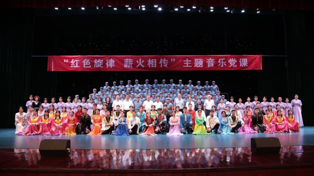 主题音乐党课在全场齐唱《没有共产党就没有新中国》和市第45中学新疆班的同学们表演的民族舞蹈《盛世欢歌》中落下帷幕。主题音乐党课不仅是一次革命历程的回顾、红色旋律的重温,更是一堂生动的沉浸式思政课。广大青年学子纷纷表示,要把对党和祖国的无限热爱,转化为使命感和责任感,用优异的成绩续写时代华章,为实现中华民族伟大复兴的中国梦而努力奋斗。