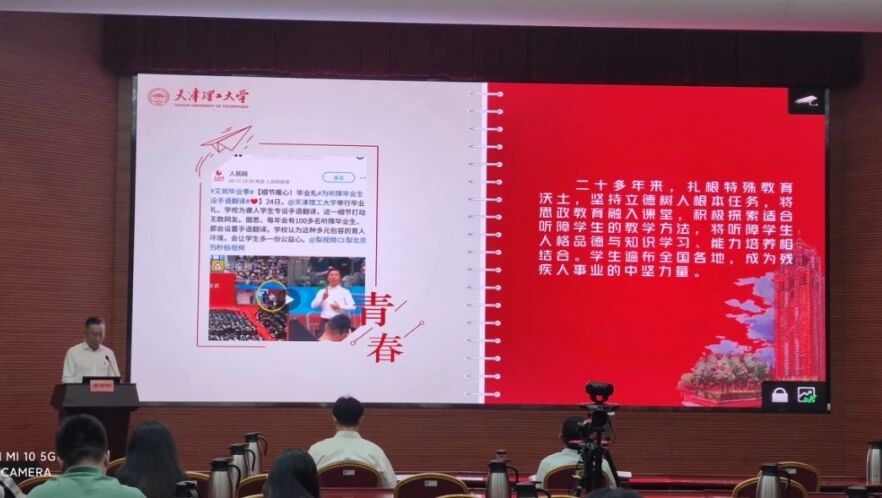 活动中,李子刚结合20余年担任听障学生英语教师的教学经历,分享了主动攻克手语难关、摸索适合听障学生的英语教学方法的有效做法,彰显了因材施教的育人智慧;其在学期末结业典礼上进行手语翻译的身影、与学生们在一张张结课照上的笑脸,体现了乐教爱生的师者之心。许超分享了自身锤炼本领、锻造品格的成长经历,在帮助学生斩获技能竞赛奖牌和推进产教融合、校企合作等各项工作中,展现了职教人传承匠心育才、筑梦强国的担当和风采。张晓燕在演讲中分享了十几年来从事一线教学、担任班主任和年级组长的工作感悟,“不落下任何一节课的坚守”“帮助学生重新找回自信和希望”“推行小组合作班级管理制度”等做法,既传承了其父辈们的教育情怀,又是践行“立德树人、言传身教、求是创新”信念的生动体现。
