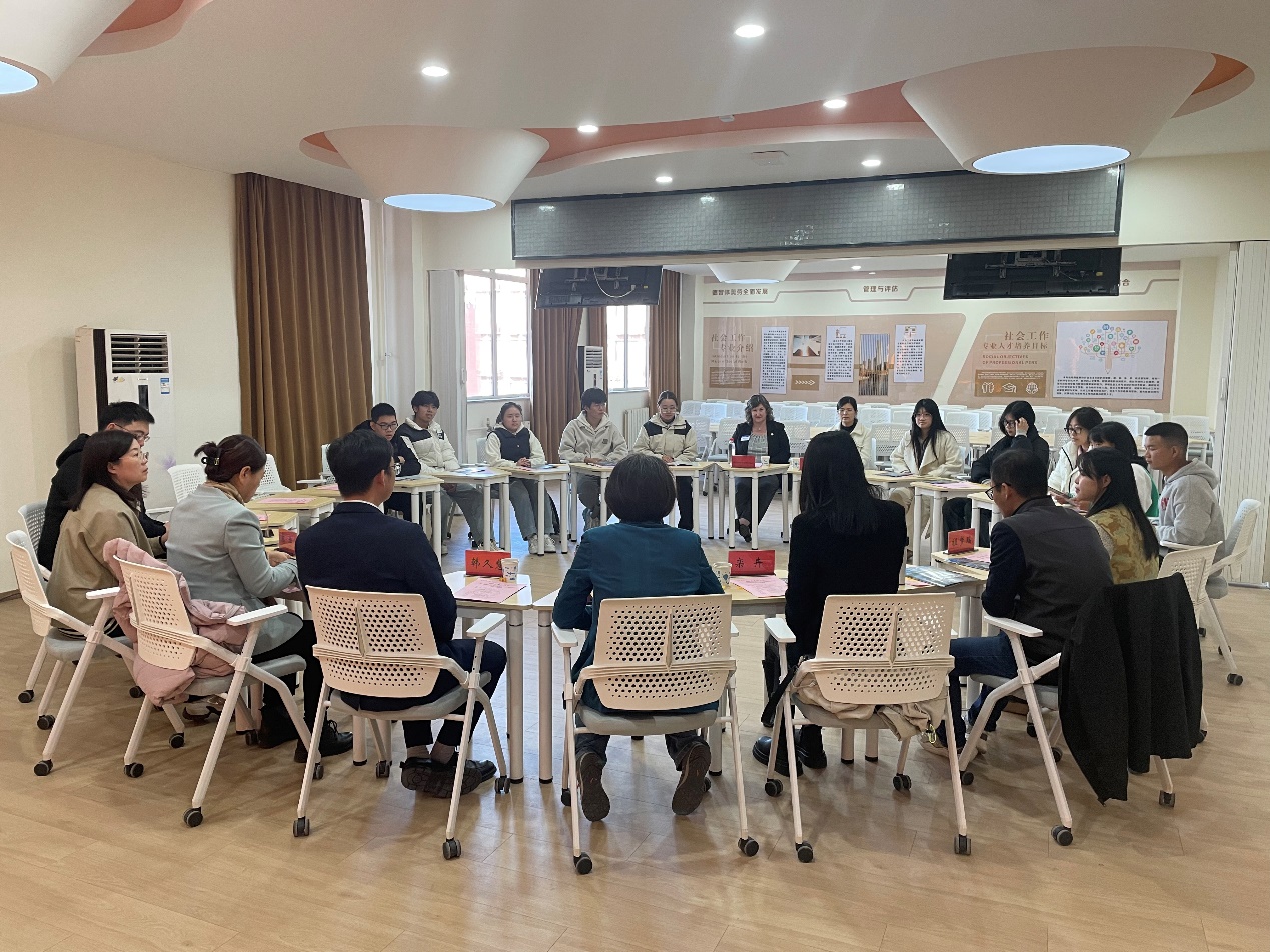 代表团前往社会发展学院座谈交流。社会发展学院相关负责人介绍了学院的发展历程、专业设置及办学成效。威斯康星大学欧克莱尔分校代表介绍了学校整体情况及特色学科。双方围绕社会工作专业1+2+1项目详细宣讲,并就师生关心的课程对接、学习生活、申请流程等问题细致解答。代表团实地参观了社会工作实验室与老年学实验室,对学院扎实的实践教学条件和鲜明的专业特色给予了高度评价。