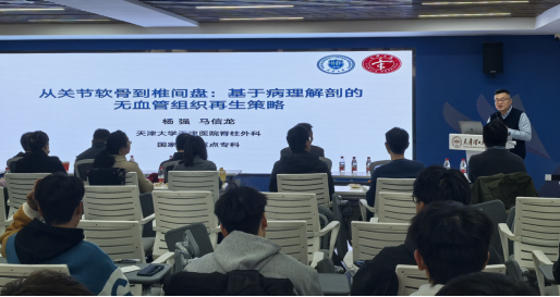 会上,天津医院杨强教授作《从关节软骨到椎间盘:基于病理解剖的无血管组织再生策略》的报告。他围绕仿生再生理念,整合模拟细胞外基质结构的支架材料、再造生理微环境及施加生物力学刺激,成功实现了无血管组织从结构到功能的生物学再生。