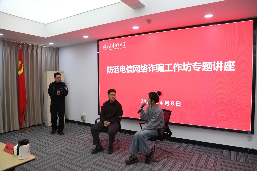 为深入推进平安校园建设,4月8日上午,我校举办校园防范电信网络诈骗工作坊专题讲座。公安西青分局刑侦支队涉网犯罪侦查大队警官陈钧泽、学苑派出所社区民警赵巍应邀作专题讲座。党委安全工作部、党委学生工作部相关负责同志,各学院学工骨干参加活动。