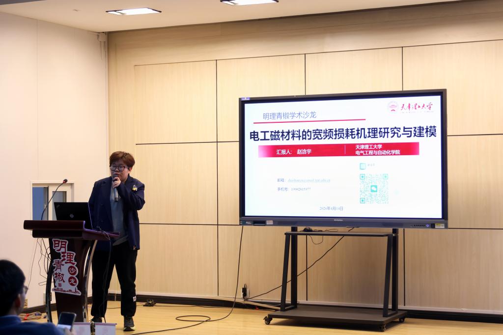 赵浛宇作“电工磁材料的宽频损耗机理研究与建模”报告,分析各类电工软磁材料在高温、应力等复杂工况及多物理场耦合作用下的磁特性,以及磁特性对材料损耗的影响。项目对宽频损耗建模展开研究,旨在构建适配工程应用的宽频电工磁材料损耗模型,推动各类电工装备的优化设计。
