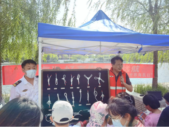 活动中,赵薪、黄文灿二位老师通过互动体验的方式向大家传授水上交通安全知识和海上救助常识,现场演示了救生衣的正确穿戴方法、几种常用的绳结以及绳结的编结和插接、航海仪器的用途等,提升了大家的水上安全防护基础知识和意识。除此之外,活动还包括“蓝海伴我行”宣传推广、航海知识讲解、保护母亲河净滩行动等活动。