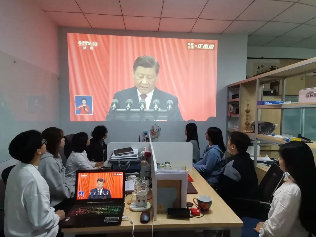 各基层党支部紧抓政治理论学习好机遇,组织党员集中收看开幕式直播。学院800余名积极分子在25-209进行线上、线下集中观看。