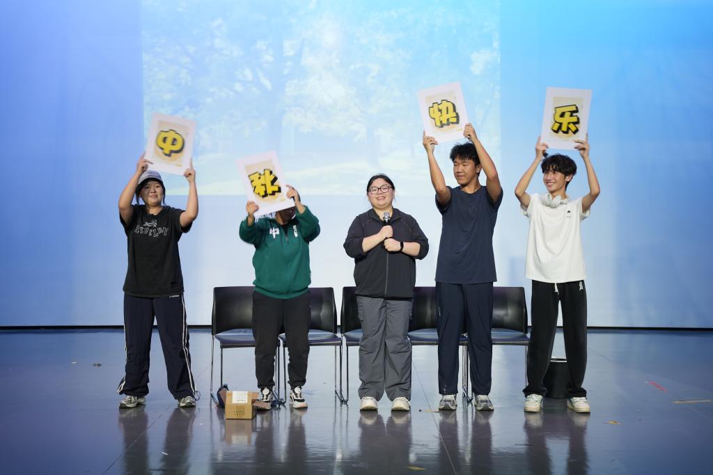在互动环节,猜灯谜、送贺卡、玩游戏、吃月饼……将现场气氛推向高潮,到处洋溢着温馨祥和的氛围。一张手写贺卡、一句感谢的祝福、一块特制的天理月饼……满载着学校对学生无微不至的关心,让在场的学生感受到如家般的温暖。