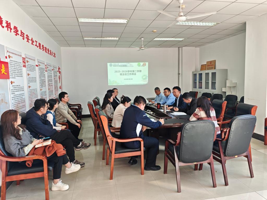 3月18日,环境科学与安全工程学院召开2026年春季学期班主任工作会议。学院党政负责人、2024级与2025级班主任、全体辅导员参加会议。